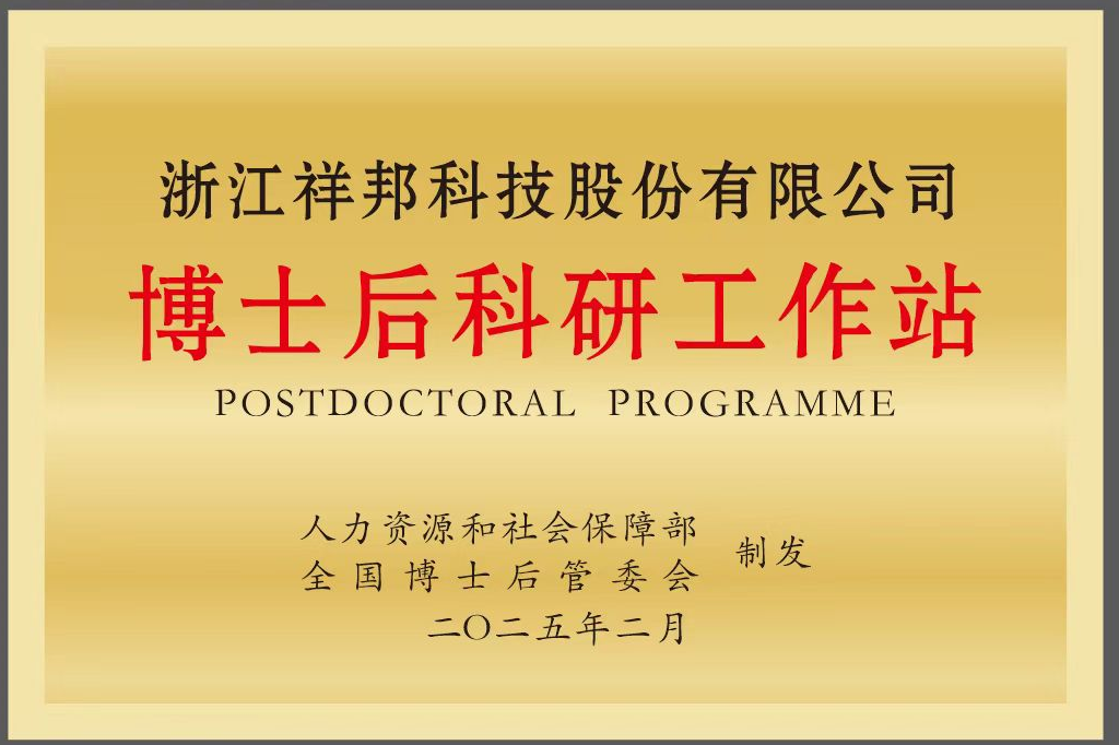 2025年2月經(jīng)國(guó)家人社部、全國(guó)博士后管理委員會(huì)聯(lián)合批準(zhǔn),祥邦科技正式設(shè)立國(guó)家級(jí)博士后科研工作站。這一里程碑距2023年3月建成浙江省博士后工作站僅兩年,標(biāo)志著公司在產(chǎn)學(xué)研融合與核心技術(shù)攻堅(jiān)領(lǐng)域邁入新階段,為深化科研創(chuàng)新體系、打造高端人才高地筑牢了根基。